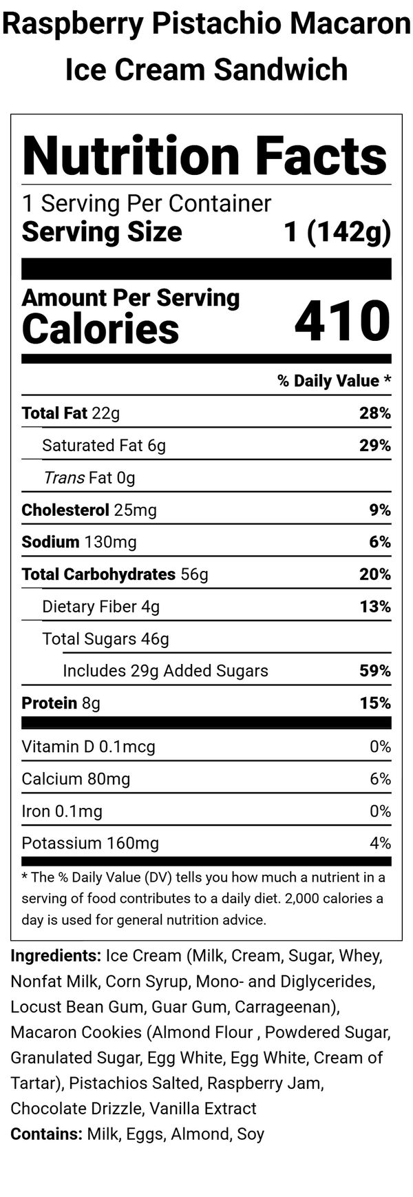 Raspberry Pistachio Macaron Ice Cream Sandwich Nutritional Information